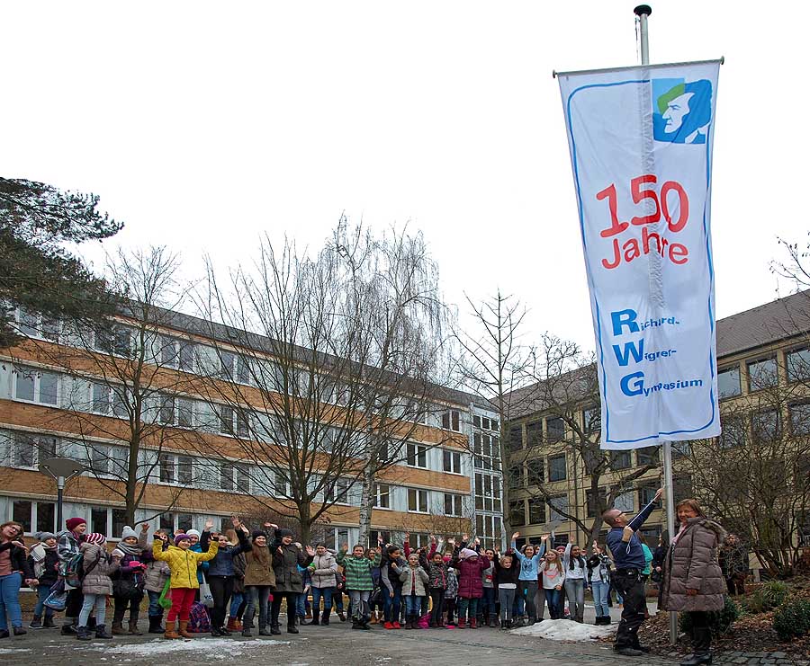 Die Jubiläumsfahnen zeigen, was los ist: Das RWG wird 150 Jahre alt.
