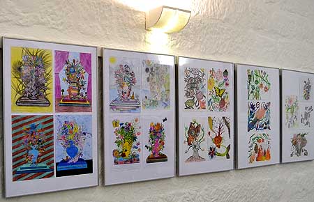 Der etwas eigenwillige Titel erklärt sich durch die Ausstellung des Künstlers Miron Schmückle, die im Sommer letzten Jahres im Kunstmuseum zu sehen waren. Schmückles Bilder zeigen ein buntes, auf den ersten Blick verwirrendes Geflecht aus floralen Motiven. Er entnimmt sie der vom Menschen unbeeinflussten „ersten Natur“ und der „zweiten Natur“ der Gärten und Blumenarrangements, um daraus seine „dritte Natur“, die der Kunst, zu formen. Unsere Schüler ließen dem „Una Quarta Natura“ folgen, also eine vierte, die sich auch der Kunst als Zitat bedient, um etwas Eigenständiges zu schaffen.
