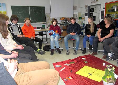 Die philosophischen Gespräche wurden von Frau Gerdes moderiert (rechts).