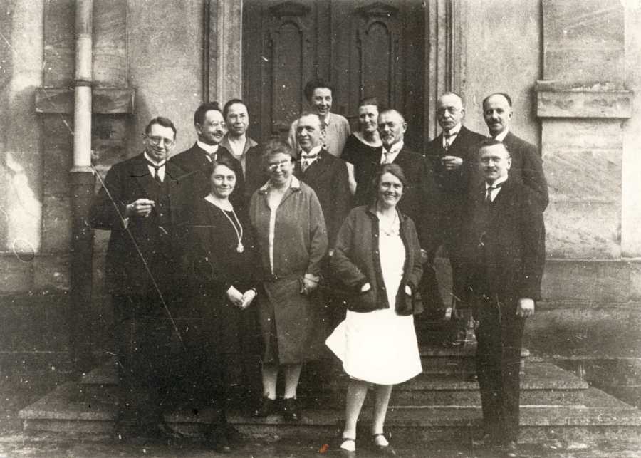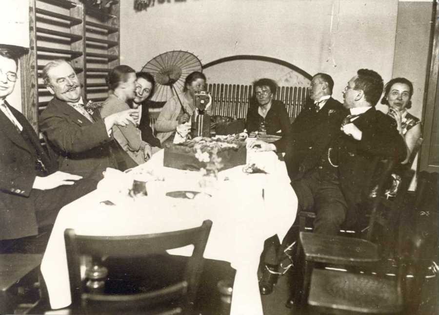 Lehrerinnen und Lehrer beim Schulfasching 1930/1931