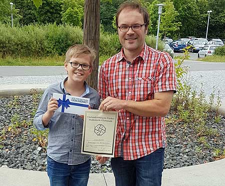 Der Sieger des Wettbewerbs und Herr Böhner, der Mathelehrer.