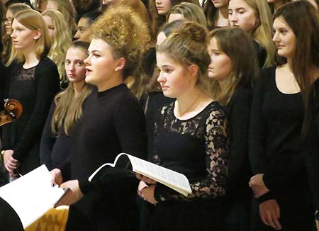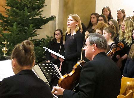 Die Solopartien bestritten zunächst Charlotte Heß, Luisa Kania mit den Rezitativ-Passagen, bevor Lena Bitterwolf die Arie „Bereite dich, Zion“ erklingen ließ. Die hellen, sauberen Stimmen zeigten sich dem anspruchsvollen Partien sehr gut gewachsen, bevor der Chor mit dem als Kirchenlied bekannten Choral „Wie soll ich dich empfangen…“ für einen Wechsel der Stimmung ins Feierliche sorgte.