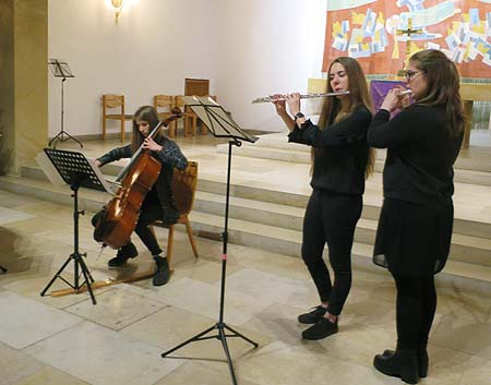 Einen überzeugenden Auftritt hatten auch Hanna Feger und Annegret Hahn als Querflötensolistinnen sowie Theresa Griese am Violoncello mit der Volksweise „Greensleeves.