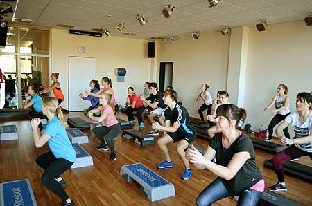 Energy-Step, so hieß der nächste Kurs, der von Jana und Janina gehalten wurde. Mit Hilfe eines Steppers wurde der ganze Körper trainiert.