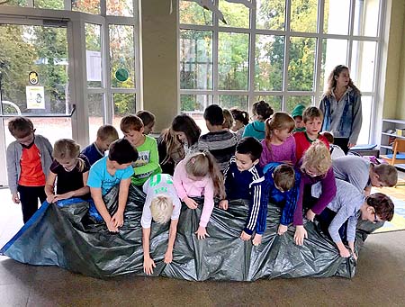 Im vierten Workshop durften die Grundschüler erleben, dass es oft sinnvoll und auch wichtig ist, dass man als Team arbeitet und nicht jeder für sich. Anderen zuhören und Lösungsvorschläge annehmen, diese führen einen nämlich oft schneller ans Ziel. Der Zusammenhalt der Kinder in der jeweiligen Klasse wurde mit Hilfe von verschiedenen Teambuilding-Spielen gestärkt.