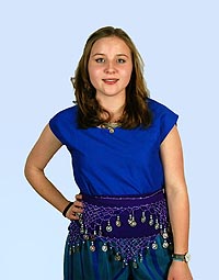 Meine Damen und Herren, als nächsten Halt erreichen wir Indien. Dieses Land beeindruckt vor allem durch seine vielfältige Landschaft, zu der das große Himalaya Gebirge und der große Fluss Ganges gehören. Für uns Europäer gehören zur indischen Kultur besonders die bunten Gewänder, die man aus Bollywood Filmen kennt. Dazu gehört ganz speziell der Sari, ebenso wie die Haremshose. Die Haremshose besitzt ihren Ursprung im arabischen und nordasiatischen Raum, wo sie schon seit vielen Jahrhunderten von modebewussten Männern und Frauen getragen wird. In Anlehnung an diese Kultur entwarf die Schülerin Lisa Kropf ein Outfit, welches aus einer Haremshose, aus einem fließenden türkisen Stoff und einem dunkelblauen Oberteil besteht. Die Farben greifen Motive wie die unendlichen Weiten Indiens und des Indischen Ozeans auf. Machen sie sich bereit- Wir landen in Kürze!