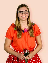 Unser nächster Halt ist das wunderschöne Spanien. Hier lege ich Ihnen als besondere Sehenswürdigkeiten Barcelona und Valencia ans Herz, wo sich die typische spanische Lebens- und Tanzfreude vorfinden lässt. Das Kleid der Schülerin Laura Matusche orientiert sich speziell am Flamenco- dem wohl typischsten Tanzstil Spaniens. Entsprechend wurden die Farben Orange und Rot gewählt, die symbolisch für die Orangenplantagen und Pomeranzen sowie das feurige Temperament der Spanier steht. Stellvertretend für die Blütenpracht des heimischen Hisbiskus wurden auf das Kostüm Blumen angebracht. Ich bitte sie nun nicht mehr aufzustehen, da wir in Kürze zur Landung ansetzen!