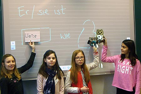 Eine abschließenden Präsentationen der einzelnen Gruppen rundete den Projekttag im Klassenzimmer der 5c gelungen ab; hier konnten schließlich die Mitschüler die Ergebnisse ihrer Klassenkameraden auf Video bestaunen und wurden selbst noch einmal nachdenklich, wenn es darum ging, welche Werte uns Tiere nun innerhalb der einzelnen Fabel vermitteln können – auch wenn es zu Hause einfach nur ganz normale Kuscheltiere sind.