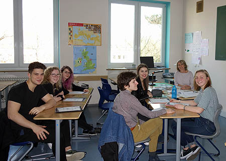 Die Gruppe übte fleißig mit Frau Hesz für das Sprachdiplom.