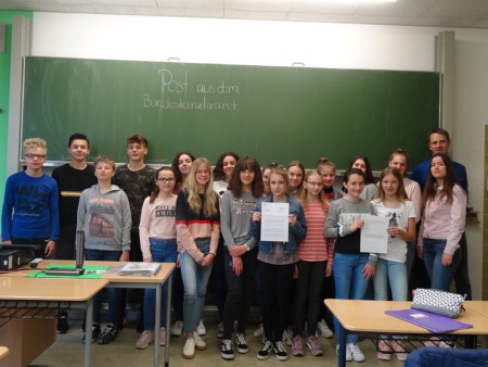Angestoßen von dem Unterrichtsthema der Christenverfolgung im römischen Reich behandelten die evang. Schülerinnen und Schüler der Klassen 7 a/c mit Herrn Rusam auch das Thema der Christenverfolgung in der Gegenwart. Tatsächlich ist das Christentum die derzeit am stärksten verfolgte Religion weltweit. Etwa 200 Mio. Christen werden aufgrund ihres Glaubens an Jesus Christus benachteiligt, von der Schulbildung oder dem Arbeitsprozess ausgeschlossen, aus ihrer Heimat vertrieben, in Arbeitslager verschleppt oder sogar mit dem Tod bedroht. Bei der Frage, was wir dagegen machen könnten, wurde unter anderem der Gedanke geäußert, dass wir unsere Bundesregierung auf diese Verfolgung hinweisen könnten. Deutschland könnte – auch und gerade durch wirtschaftlichen Druck – seinen Einfluss für Religionsfreiheit weltweit geltend machen. So schrieben die Schülerinnen und Schüler einen Brief an die Bundeskanzlerin mit der Bitte, sich mehr für unsere verfolgten Mitchristinnen und Mitchristen weltweit einzusetzen. Anfang Mai kam die Antwort aus dem Bundeskanzleramt. Darin machte die Referatsleiterin Stephanie Zwanger deutlich, dass die Bundesregierung das intolerante Verhalten gegenüber anderen nicht einfach hinnehme, sondern weltweit für Religionsfreiheit eintrete: „Und wenn ein intolerantes Verhalten gegenüber anderen auftritt, spricht sie (die Bundesregierung) das Problem auch immer wieder an.“