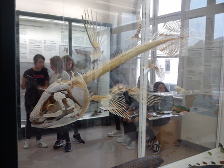Zu einer kurzen Essenspause begaben wir uns um 12 Uhr zum Phyletischen Museum vor dem Neutor 1. Der eigentliche Zweck, der uns dorthin führte, war die Museumstour zum Thema „Evolution verstehen“, die um 13 Uhr begann. Mit Hilfe zahlreicher Exponate wurde uns die Entwicklung verschiedener Tierarten erklärt. Dazu bekamen wir ebenfalls einen Fragebogen mit einem Kreuzworträtsel. Auch diese Ausstellung war sehr interessant, dauerte aber leider nur 45 Minuten.