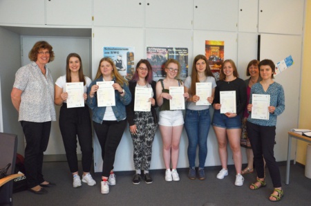 Alle neun Schüler/innen haben beim CAE so gut abgeschnitten, dass ihnen für dieses Schuljahr viermal 15 Notenpunkte als kleine Leistungsnachweise im Englisch-Unterricht gutgeschrieben werden.