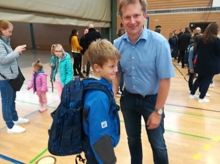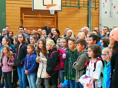 Die Klasseneinteilung der neuen fünften Klassen erfolgte in der Turnhalle. Auch Eltern, Geschwister, Verwandte und zahlreiche Großeltern blickten erwartungsfroh.