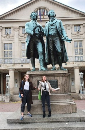 Die Gelegenheit für kürzere Schulfahrten seit Corona (endlich durften wir wieder fahren!) nutzte auch die Oberstufe der Q11, die sich im Oktober aufmachte zur mittlerweile traditionellen Exkursion im Rahmen des Literaturunterrichts zur deutschen Klassik – Ziel der Studienfahrt war natürlich Weimar, die Kleinstadt in Thüringen, die wie wohl kein anderer Ort untrennbar mit den beiden ‚Dichterfürsten‘ Goethe und Schiller verbunden ist.
