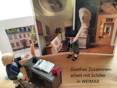 Hier erhielten die Schüler/innen nicht nur ein Einblick in das Thema ‚Weimar als Stadt der Literatur um 1800‘, das natürlich vorab flankierend im Unterricht behandelt war; sie konnten auch direkt – gewissermaßen anhand der Originalschauplätze vor Ort – nachvollziehen, wie die beiden Dichter ihre Jahre innerhalb der Weimarer Hofgesellschaft nutzten, um ihr Verständnis von Natur und Kunst, Gesellschaft und Kultur bzw. Literatur auszuloten: