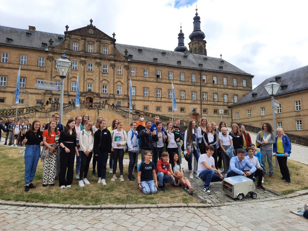 Nachdem pandemiebedingt die Veranstaltung leider in den letzten beiden Schuljahren hatte pausieren müssen, konnte Mitte Juli endlich wieder der Tag der Begabtenförderung wie gewohnt in Präsenz stattfinden: Tagungsort war das gleichermaßen idyllisch wie imposant gelegene Kloster Banz in Bad Staffelstein, zu dem sich insgesamt acht Schüler/innen des RWG gemeinsam mit Frau Fröber und Frau Track am Morgen aufmachten.