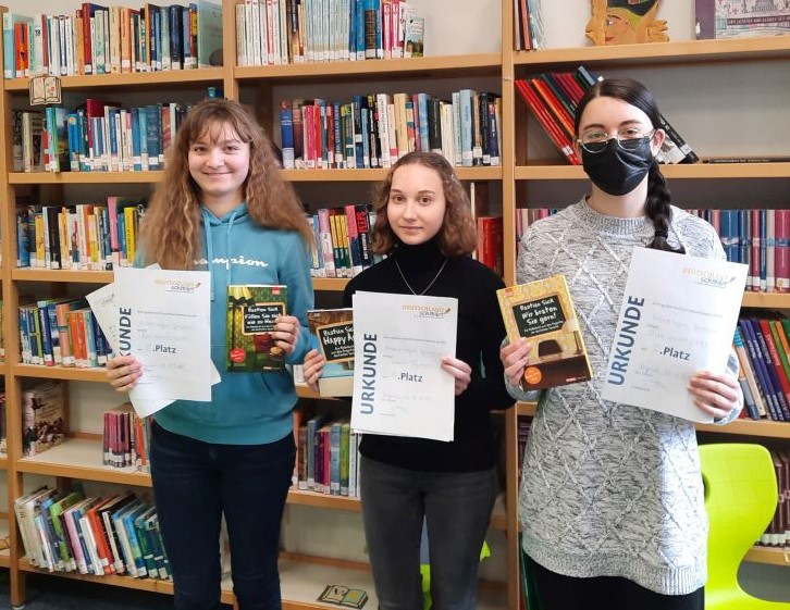 Auf dem weiteren ‚Siegertreppchen‘ landeten Leni (Q12) und Selina (Q11); auch sie erhielten Urkunden und Buchpreise von der Fachschaftsleitung, die den Schülerinnen herzlich gratulierte.