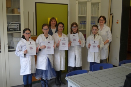 Schülerinnen der 5. Klasse nahmen an der 1. Wettbewerbsrunde erfolgreich teil und wurden mit einer Urkunde ausgezeichnet. Die Schülerinnen recherchierten zu den Bestandteilen von Milch und führten einfache Nachweise für die in der Milch enthaltenen Hauptbestandteile durch. Des Weiteren konstruierten sie ein Messgerät zur Bestimmung der Dichte verschiedener Milchsorten.