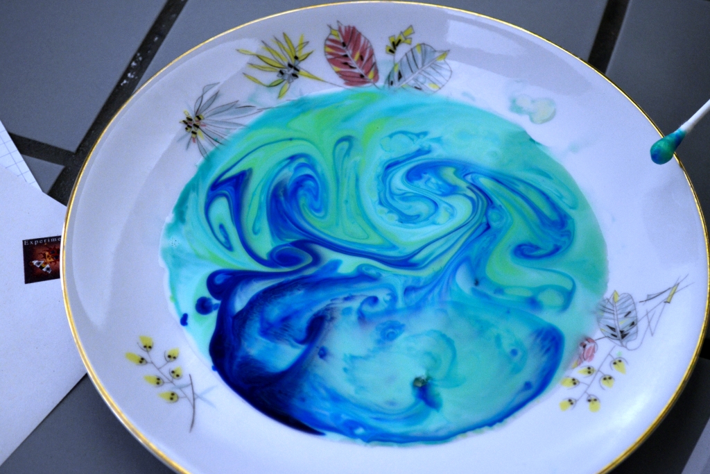Kunst mit Milch und Lebensmittelfarbe