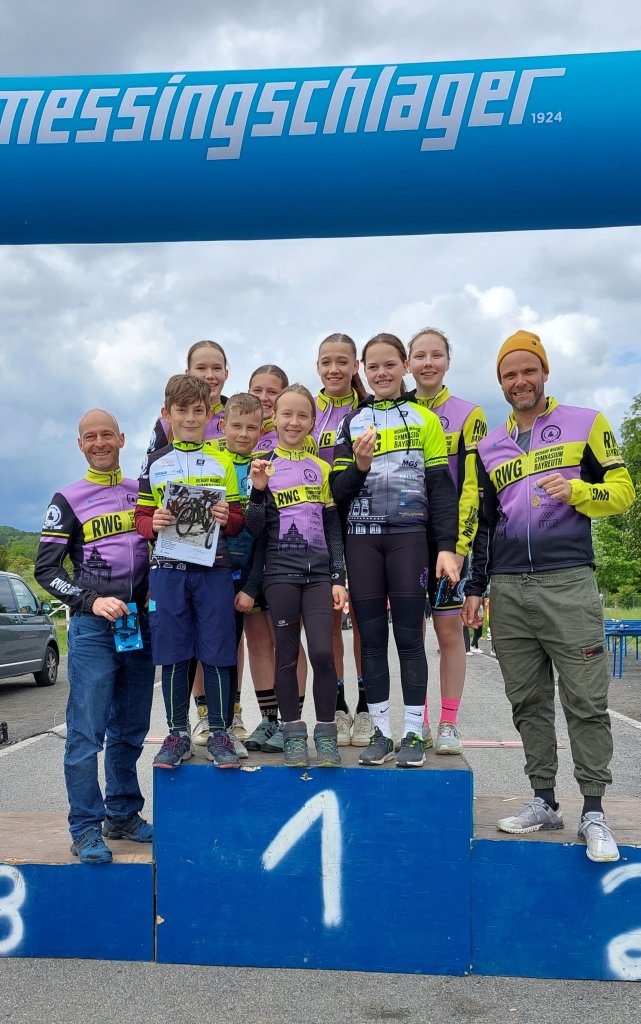 Neben den amtierenden Deutschen Meistern Laura Popp, Emma Heinrich, Sarah Ströhla und Amelie Knauer (alle 9. Klasse) stand in diesem Jahr ein zweites RWG Mixed Team mit Youngstars aus unser 5. und 6. Klasse am Start der Oberfränkischen Schulmeisterschaften im Mountainbiken. Diese fanden am 12.05. in Baunach bei Bamberg statt.