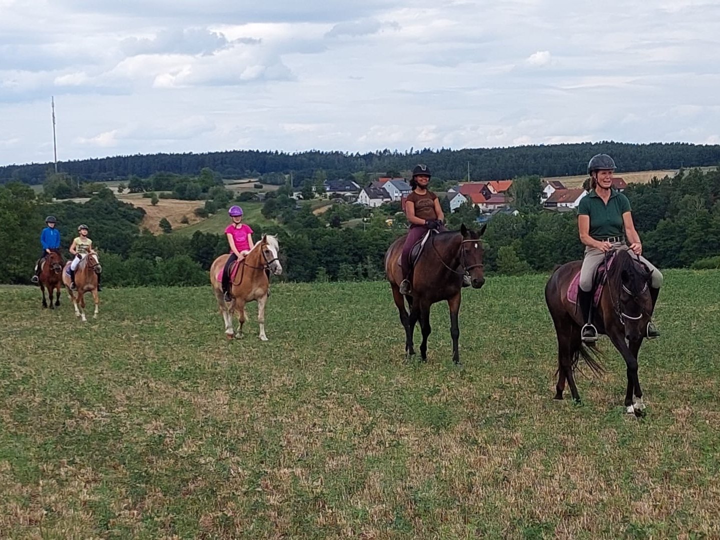 mal geht es mit der Reitlehrerin, Frau Harting, zu einem flotten Ausritt in die wunderschöne Umgebung von Creußen.