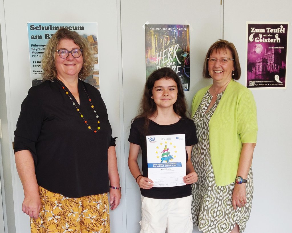 Unsere Schülerin Jule Wittauer erhielt in den vergangenen Wochen im Rektorat Ihre Urkunde zum Sieg auf Bundesebene. Wir gratulieren herzlich.