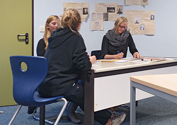 Danach wurden die zwei Bewerber jeweils gebeten ihren Lebenslauf wiederzugeben und auf Fragen, z. B. zu eventuellen Schulwechseln oder Wiederholungen einer Jahrgangsstufe, zu antworten.
