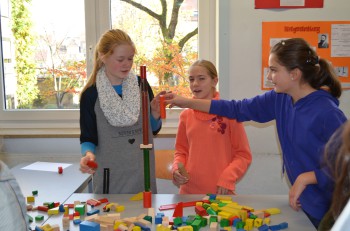 Hier einige Impressionen vom Wettbewerbstag: der Bau des höchsten Turms von Bayreuth, die Gummibärchen-Schleuder, das Schülerquiz und die abschließende Preisverleihung durch die Schulleiterin Frau Graf.