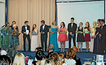 Dem pflichtete Erika Sevestre, die Oberstufenbetreuerin des Jahrgangs, bei, denn der Jahrgang sei „pflegeleicht, so gut wie nie und so engagiert wie selten“ gewesen: Sie erinnerte an die zahllosen Beiträge zu den Konzerten und zu den Aufführungen und an andere Initiativen: „Immer, wenn es etwas zu tun gab, war auf Sie Verlass!“, wandte sie sich an die Abiturienten, die, ebenso wie die stolzen Eltern, das Lob gerne hörten.