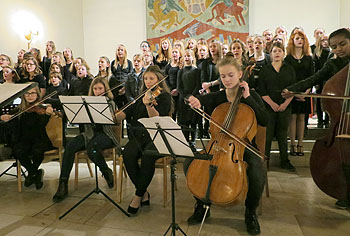 Von wuchtiger Orgelmusik getragen war dagegen Georg Friedrich Händels F-Dur-Konzert, welches das Schulorchester spielte. Charlotte Heß und Karla Schulte meisterten souverän die Orgel-Solo-Partien und trugen so wesentlich zum Gelingen des Auftritts bei.