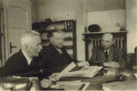 1947 im Lehrerzimmer der wieder geöffneten Schule (Dr. Bayer, Hans Rosler, Richard Maron)