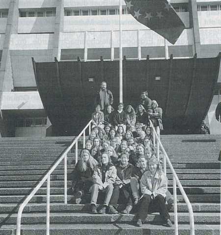 Europa-Fahrer 1996 auf der Treppe des Parlaments in Straßburg