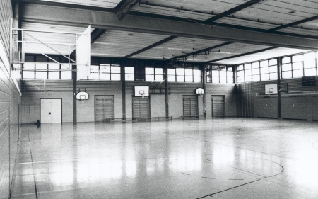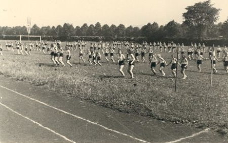 Nach 1945 war der Sport erneut wieder fest im Lehrplan verankert, allerdings wurden die Auswüchse der Nazi-Zeit gestutzt. Die Schule beteiligte sich seit den fünfziger Jahren auch an den Bundesjugendspielen, die Skikurse wurden wieder aufgenommen. Zum Manko wurde allerdings immer mehr, dass die Schule nur noch über die alte Aula als Turnhalle verfügte und es keine angemessenen Außensportanlagen gab. Noch lange Zeit wurde das Laufen auf einer Schotterbahn im heutigen Schulhof trainiert. Erst der Bau der modernen Dreifach-Turnhalle und die Einweihung der modernen Außensportanlagen zu Beginn der achtziger Jahre brachten hier Entlastung.