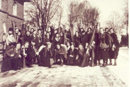 Wenigstens eine erfreuliche Neuerung gab es in den dreißiger Jahren: Die Schülerinnen und die Lehrerschaft entdeckten den Wintersport. 1938 besuchten die 5. und 6. Klassen, also die höheren Klassen, erstmals im Winter das Schullandheim in Hohenberg an der Eger. Die Bretter waren dabei, der Schnee war g’führig, und sofort ging es den Hang hinab. Man übte sich auch im Skilanglauf. Damit begannen die Skikurse an der Schule, die in den fünfziger Jahren wieder aufgenommen wurden und die bis heute fortgesetzt werden.