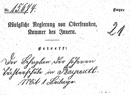 Schreiben Nr. 15674 der Königlichen Regierung von Oberfranken, Kammer des Innern, im Jahr 1900