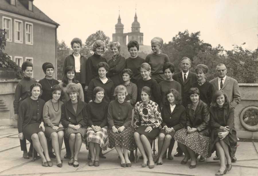 Abiturientinnen 1963/1964 mit Schulleiter Hopf und Lehrer Landgraf
