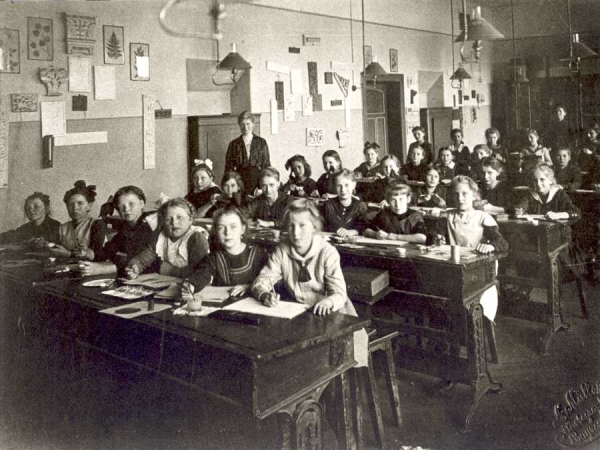 Else Birnstein mit ihren Schülerinnen im Zeichensaal 1919