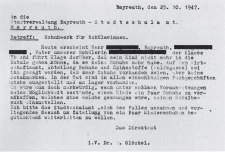 Antrag des Schulleiters Glöckel auf Zuteilung von Schuhen 1947
