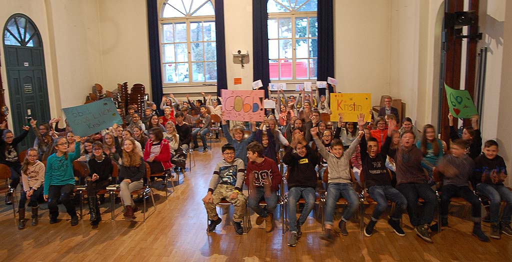 Hoch motiviert waren an diesem Tag nicht nur die in einem Klassenentscheid vorab gekürten Lesesieger angetreten, auch die Klassen selbst hatten sich mit Plaketen zur Unterstützung ihres Kandidaten mächtig ins Zeug gelegt, um so ihre Mitschüler/innen tatkräftig anzufeuern.
