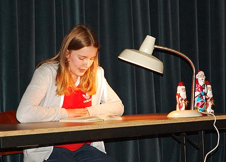 Somit sollte erst die zweite Runde die Entscheidung bringen, bei der es um das sichere und gewandte Vorlesen eines unbekannten Textes ging. Auch hier war passend zu der adventlichen Stimmung in der Aula eine entsprechende Geschichte ausgewählt worden, die noch dazu in der Heimat des bekannten fränkischen Christkindlesmarktes in Nürnberg spielte.