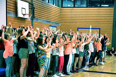 In der Turnhalle hatten die Schüler des RWG zur Begrüßung und Einstimmung Lied- und Sportvorführungen einstudiert.