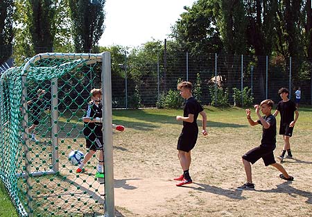 Gleich daneben standen zwei Fußballtore für alle, die lieber kicken wollten. Fit machen konnten sie sich durch allerlei Geschicklichkeitsübungen, wenn es darum ging, mit dem Ball am Fuß einen Hindernisparcours zu absolvieren.