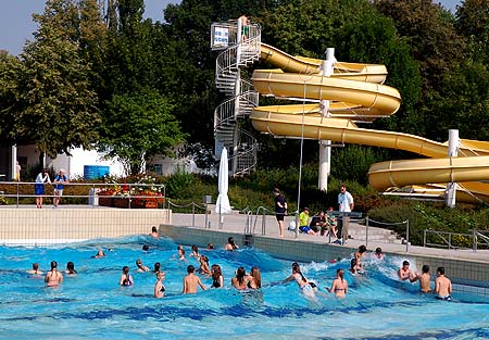 Und zu dem gehörte natürlich der Badespaß. Der durfte im Kreuzsteinbad nicht zu kurz kommen. Bei dem warmen Sonnenschein war es eine Lust, im Wellenbad eine kleine Abkühlung zu suchen oder auf der großen Rutsche ins kühle Nass hinunterzugleiten. So verging die Zeit wie im Flug und als die Mittagsstunde gekommen war, entschlossen sich viele spontan, noch zu bleiben. So schön kann Schule sein.