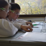 Am ersten Kurstag stand die Füllertinte im Fokus der chemischen Experimente. Mit großem Eifer wurden Tintenkiller und Tintenpatronen zersägt, um die Inhaltsstoffe näher zu untersuchen und Tests mit ihnen durchzuführen. Die Beobachtungen wurden protokolliert und in einer Forschungsarbeit ausgewertet und diskutiert. Ziel ist die Teilnahme an der diesjährigen JuniorScienceOlympiade.