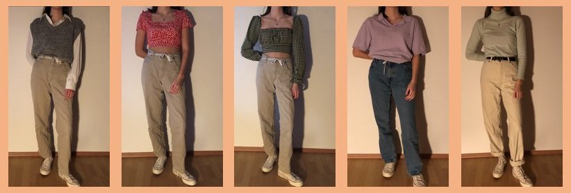 Doch so muss es nicht sein! Die Schülerinnen des Sozialwissenschaftlichen Zweigs haben Outfits aus Anziehsachen zusammengestellt, die sie selbst secondhand gekauft haben. Auf den Bildern seht ihr, wie stylisch sich die Sachen kombinieren lassen. So geht Mode ganz ohne Fast-Fashion. Und ganz nebenbei: Im Secondhand-Laden gibt es manchmal auch Restposten, also vollkommen neue Kleidungsstücke, die für einen Bruchteil des Normalpreises verkauft werden. In jedem Fall finden alte und neue Kleidungsstücke, die von der Qualität her durchaus hochwertig sind, auf diese Weise neuen Gebrauch und wurden nicht nur produziert, um ein paar Mal getragen zu werden und dann auf einer Mülldeponie zu landen. Für geringe Preise kann man einzigartige Kleidungsstücke erwerben, die kein anderer besitzt. Die Bilder zeigen Outfits, die in einem Preisrahmen von 6 – 35 € ergattert wurden und für die man neu viel mehr Geld hätte ausgeben müssen. Es gibt sie in jeder Größe, vielen verschiedenen Styles und für alle Geschlechter, somit kommt keiner zu kurz. Alte Kleidung kann sehr modern gestylt werden, vor allem jetzt wo der Vintage-Look wieder in ist.