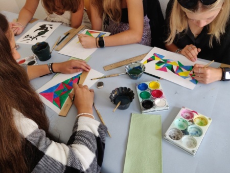 Endlich durften die Gastschüler den Unterricht im RWG besuchen, ehe sie um 10.30 Uhr eine Ausstellung des gebürtigen Tschechen und Wahlnorddeutschen Wenzel Hablik besuchten. Frau Dr. Trost führte die Gruppe und begleitete sie auch in die Werkstatt des Museums, wo gemeinsam utopische Türme in Aquarell gemalt werden durften – schönes Mitbringsel und eine einmalige Erinnerung an gemeinsames Tun entstand. Nach einem gemeinsamen Mittagessen in unserer RWG Mensa, das nicht so gut ankam, ging die Gruppe ins Markgräfliche Opernhaus, welches auch wegen seines neuen innovativ gestalteten Museums eine große Begeisterung hervorrief. In der Klaviermanufaktur Steingräber, welche sich schräg gegenüber der Schule befindet, konnte von unseren SchülerInnen im Rahmen der Führung sogar auf dem berühmten Lisztflügel ein eigenes Klavierstück performt werden.