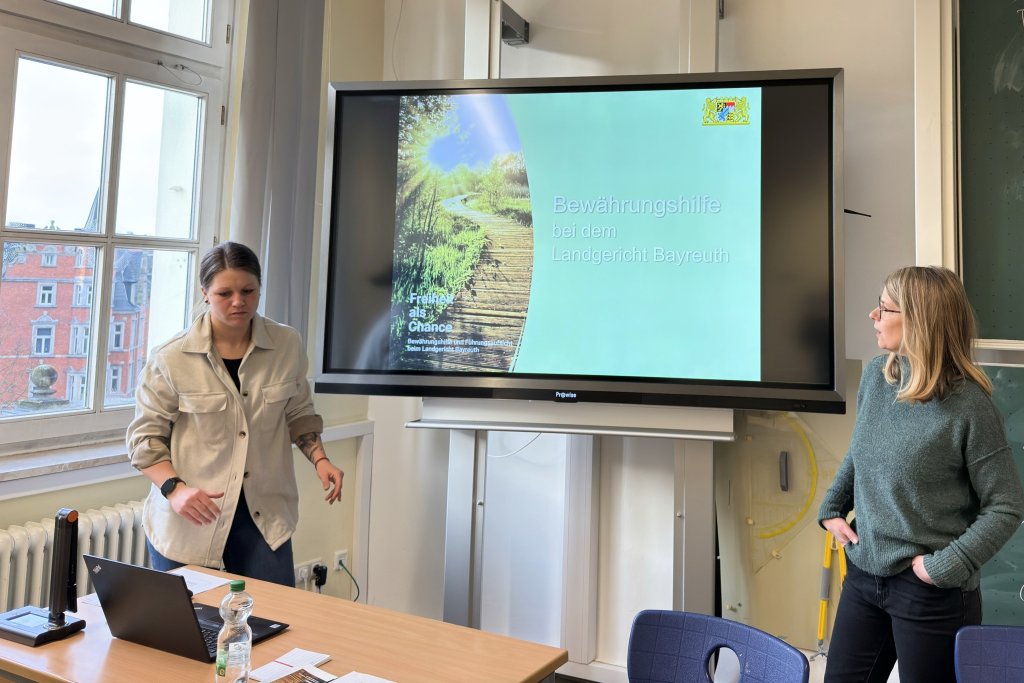 Keine Sorge, die beiden Damen von der Bewährungshilfe Bayreuth kamen nicht ans RWG wegen einer ihrer rund 600 Probanden, sondern besuchten passend zum aktuellen Unterrichtsinhalt, die Wirtschaftsklasse 10ad. Auf Vorschlag ihres Lehrers Herrn Schill hin, hatte eine Schülerin mit den Bewährungshelfern Kontakt aufgenommen und eine spannende Präsentation für den 27. Februar, vereinbart. In den beiden ersten Unterrichtsstunden bekamen die Schülerinnen und Schüler dann ihren bereits angekündigten Vortrag. Dieser begann mit einer kurzen zusammenfassenden Einführung und weitete sich dann auf die speziellen Aufgabenbereiche der Risikominimierung und Resozialisierung, sowie das Klientel aus. Die Jugendlichen wunderten sich über die ein oder andere unerwartete Information und erfuhren so unter anderem, dass die Mandantschaft zu 90% männlich und entgegen der gesellschaftlichen Erwartung, zu 70% deutscher Herkunft ist, wie auch, dass die Probanden tatsächlich aus jeder Altersgruppe, bereits ab 11 Jahren, stammen.