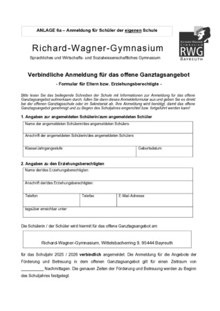 Anmeldeformular + Entbindung Schweigepflicht 25-26