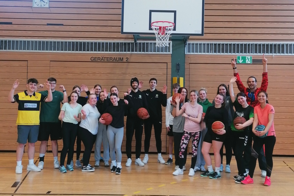 Stars zum Anfassen: Profis des BBC besuchen Q12-Basketballkurs