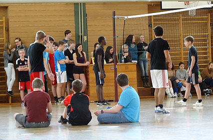 Interessante Begegnungen sah das RWG-Volleyballturnier, das in der Zeugniswoche stattfand. Die Klassen legten sich richtig ins Zeug und zeigten auch schöne Spielzüge. Siegermannschaft bei den Mädchen in der 9. Jahrgangsstufe wurde die Klasse 9b vor den Klassen 9d und 9a, in der 10. Jahrgangsstufe kam die Mädchenmannschaft der Klasse 10c auf den ersten Platz, gefolgt von der 10b und der 10a. Bei den Jungen gewann die Klasse 9d vor der 10b und der 9c. In der Oberstufe belegte die Lehrermannschaft den 1. Platz vor einer Auswahl der Q12 und der Q11.